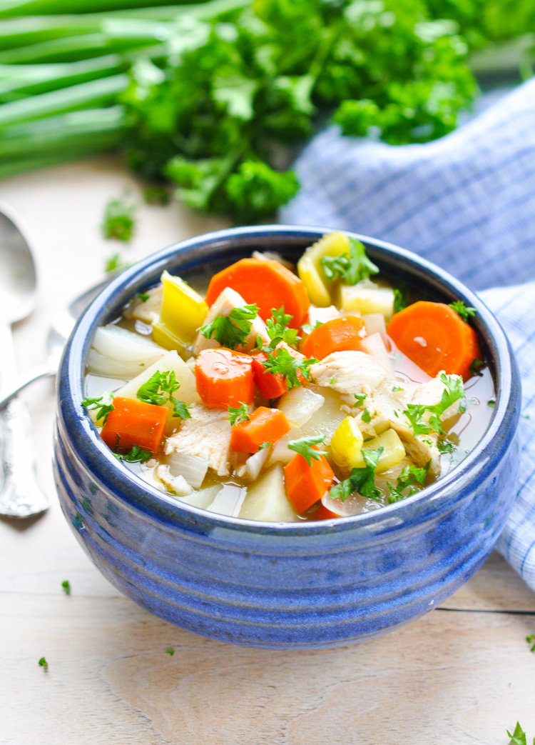 “An “empty out the fridge” kind of soup — use your favorite veggies, add some quinoa + chicken, and finish it with a delicious spice blend. Healthy and hearty with all the ease of being slow cooked (dump it and forget about it meal).”. Recipe: ChelseasMessyApron.