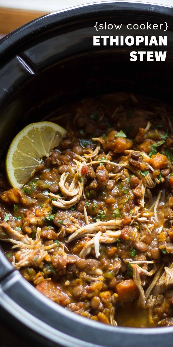 “A hearty and flavorful slow cooker Ethiopian chicken stew made with Ethiopian spices, lentils and sweet potatoes. Bring some exotic flavors to your dinner table!” Recipe: SweetPeasAndSaffron.