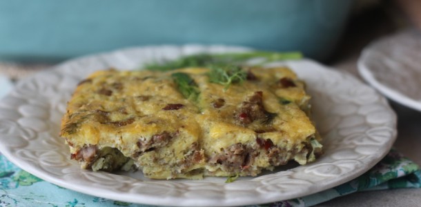 Sausage, Leek and Asparagus Breakfast Casserole From Paleomg.com