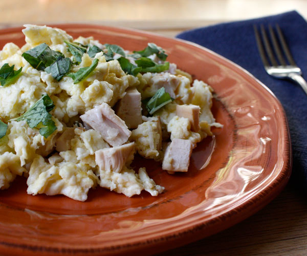 This low-calorie scramble is low in carbohydrates and packed with protein; a great way to start the day.