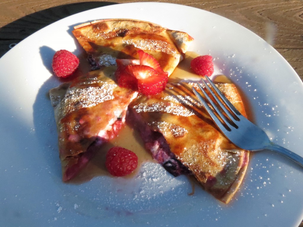 A sweet and satisfying breakfast quesadilla filled with creamy cheese and fresh berries.