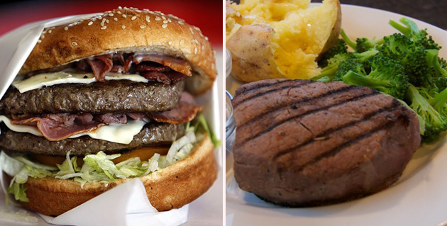 Meal 4: Homemade lean beef burgers with 2 slices cheddar, a slice of bacon, avocado and a wholewheat bun, plus a huge mixed salad.