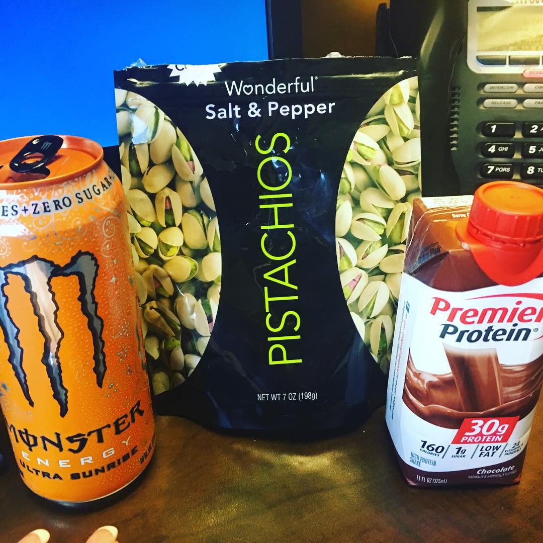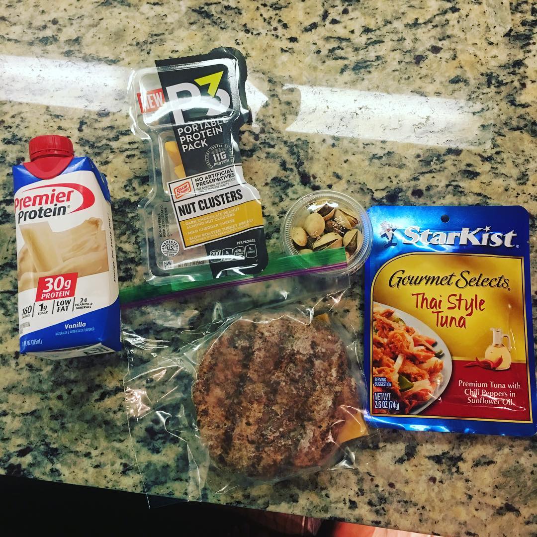 “Here is breakfast, lunch, and two snacks while I’m at work. Total of 88 grams of protein and super yummy”