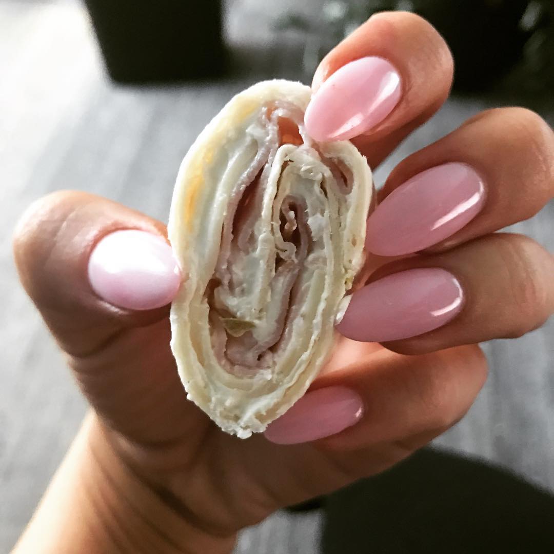 “Low Carb Tortilla Wrap! Ingredients: LOW CARB tortilla, jalepeno cream cheese, fresh deli meat (ask for nitrate free), and Swiss cheese. It’s easy! Spread a very thin layer of jalepeno cream cheese onto tortilla, layer with meat and cheese, roll it up, and slice it! Only 6 grams of net carbs!”