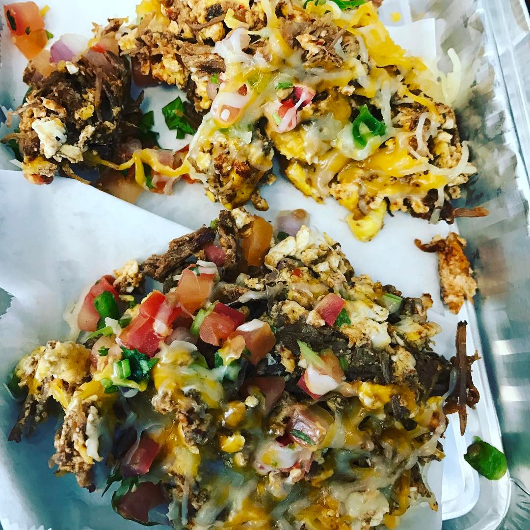 “Today’s choice: egg and barbacoa tacos-kick off those tortillas!”