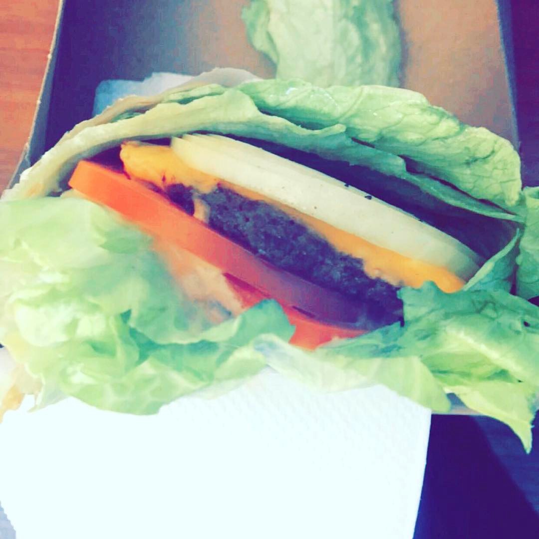 “One of my favs is In-and-Out burger. Any of their sandwiches can be ordered “protein style”, which just means the substitute the bun for a lettuce wrap.”