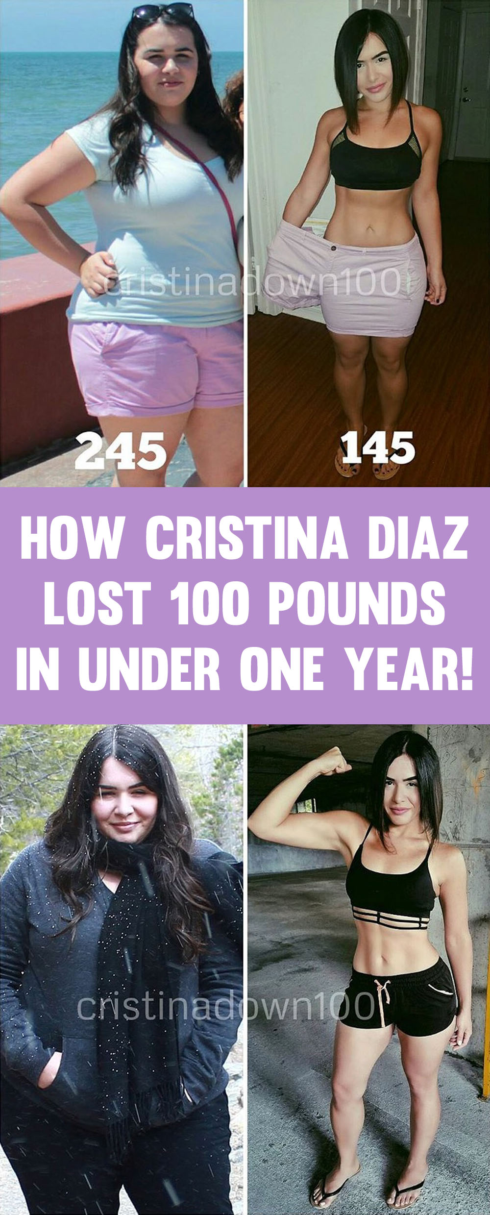 Cristina documented her journey on her Instagram and amazingly lost 100 pounds in one year and now is on a mission to help people achieve the same results!