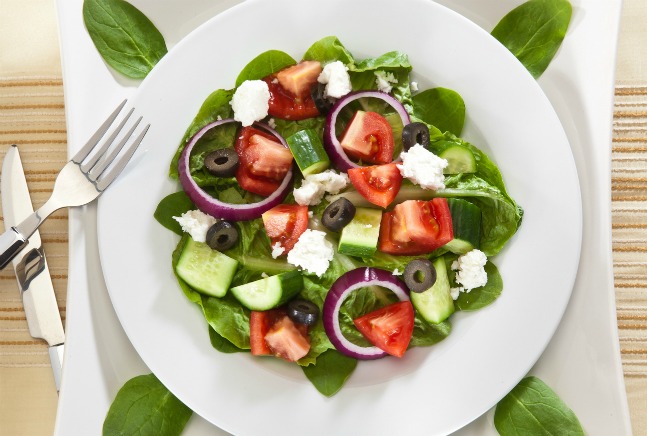Dinner: Loaded Greek Salad. This flavorful Greek salad has it all. Top with grilled chicken for added protein. Greek Salad Recipe: http://nutritiouslife.com/recipes/greek-salad/