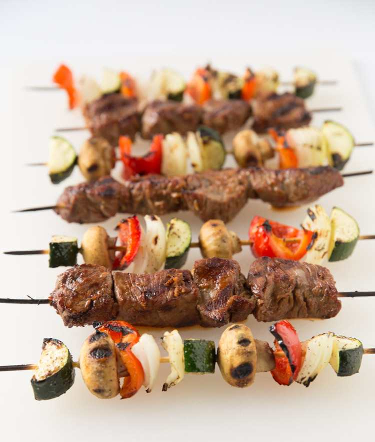 Dinner: Steak Kabobs. Think steak is off limits in a healthy diet? Think again! Lean cuts of beef can provide much needed iron and vitamins. With plenty of veggies, these kabobs are a great choice: http://www.recipe.com/beef-and-vegetable-kabobs/ *omit sugar in recipe and use stevia or honey instead. A small baked potato drizzled with olive oil is perfect.
