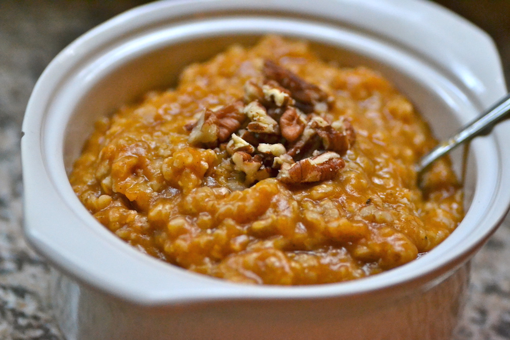 Breakfast: Pumpkin oatmeal. Pumpkin is loaded with vitamins and fiber, but all you’ll think about with this oatmeal is how yummy it is! Pumpkin Oatmeal Recipe: http://www.foodnetwork.com/recipes/aarti-sequeira/pumpkin-oatmeal-recipe.html