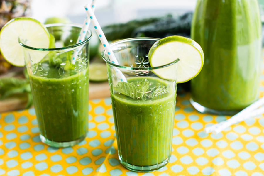 Breakfast: Green Smoothie. Green smoothies are an awesome way to set the day for a day full of healthy eating. Add a handful of greens, a frozen banana, a few blueberries, and enough milk/milk alternative to reach your preferred consistency to the blender to create a dynamic green smoothie.