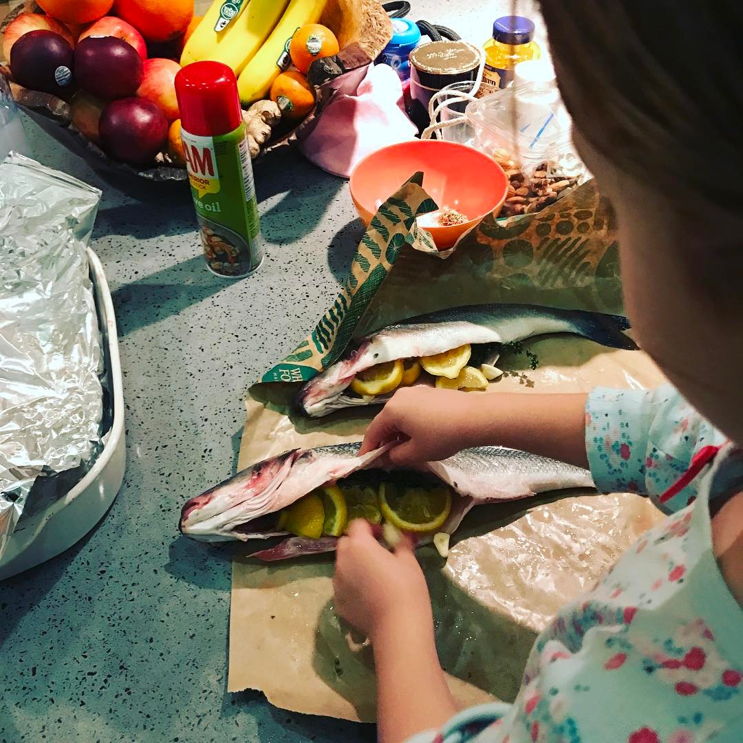 Lunch: Fish With Garlic, Lemon & Thyme & Vegetables.