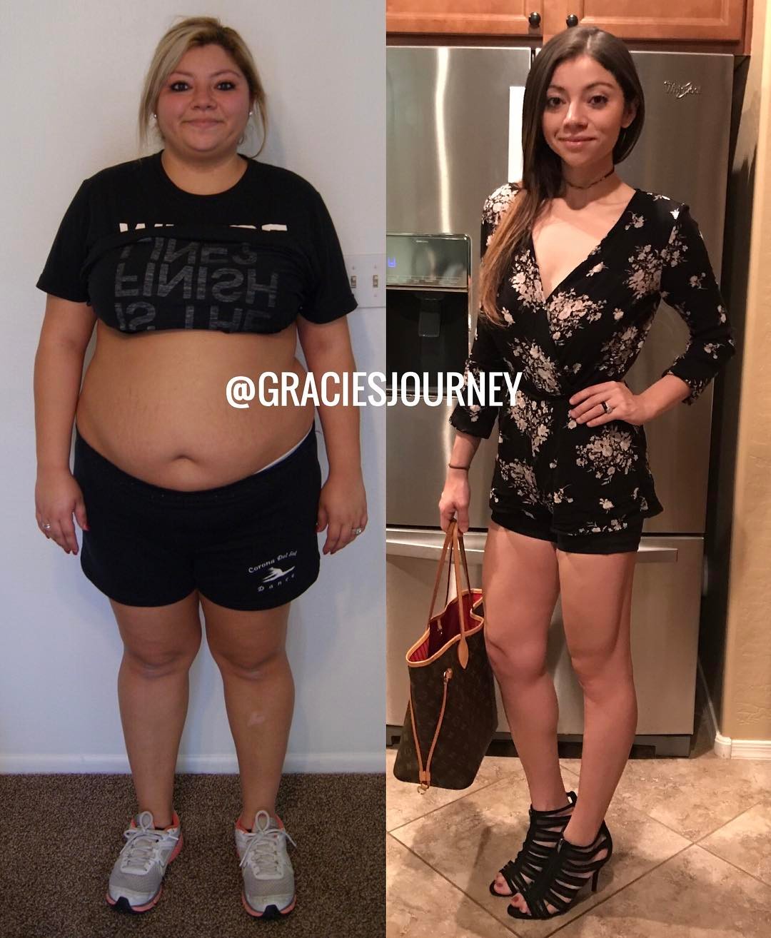 “I also quit soda and fast food cold turkey (which was easier than I expected), but I didn’t make other extreme changes. I hate oil and vinegar on salads, so I didn’t force myself to eat it. I knew that I had to enjoy getting healthy to stick with it. Then, I created an Instagram account, @graciesjourney, to track my progress and share my story.”