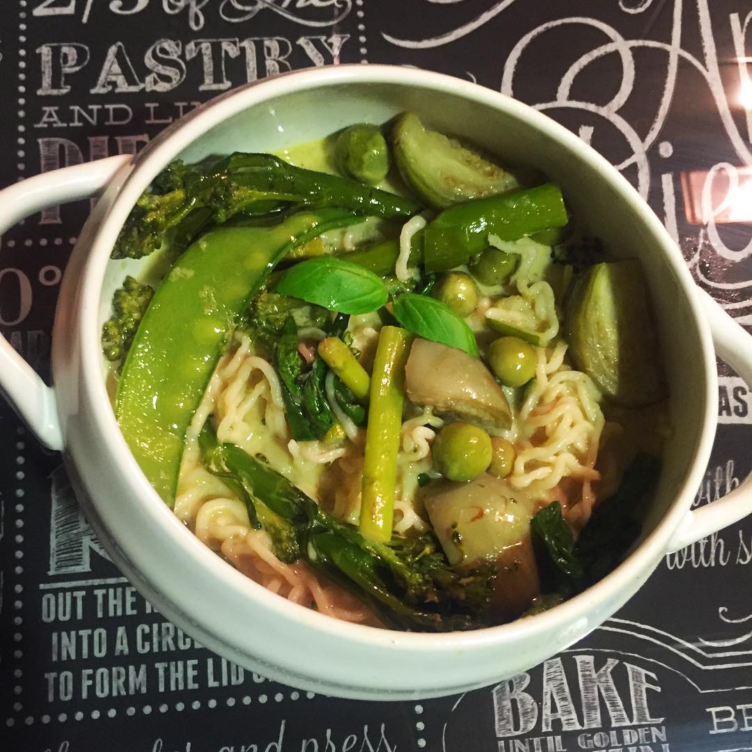 “Homemade Thai green curry.”