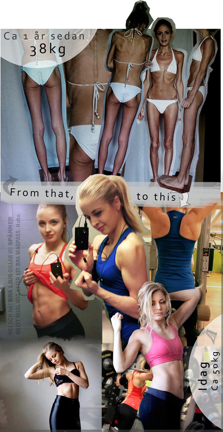 I easily started to double the amount of food, and it was an amazing to feel the energy coming back to my body. See myself gaining weight and actually like it. The gym was really a big part in my recovery. But be aware – I don’t say it’s the key to recovery. It worked for ME, but it could easily been the other way around, a new obsession. It’s important to be honest to yourself, find your own path to recovery.