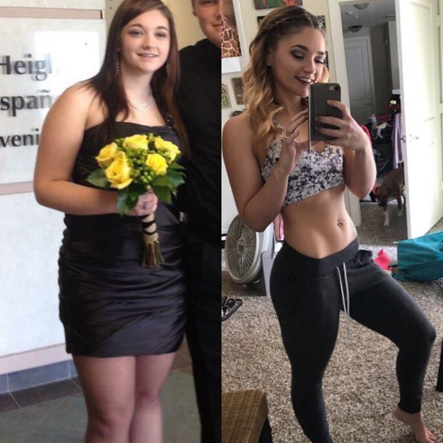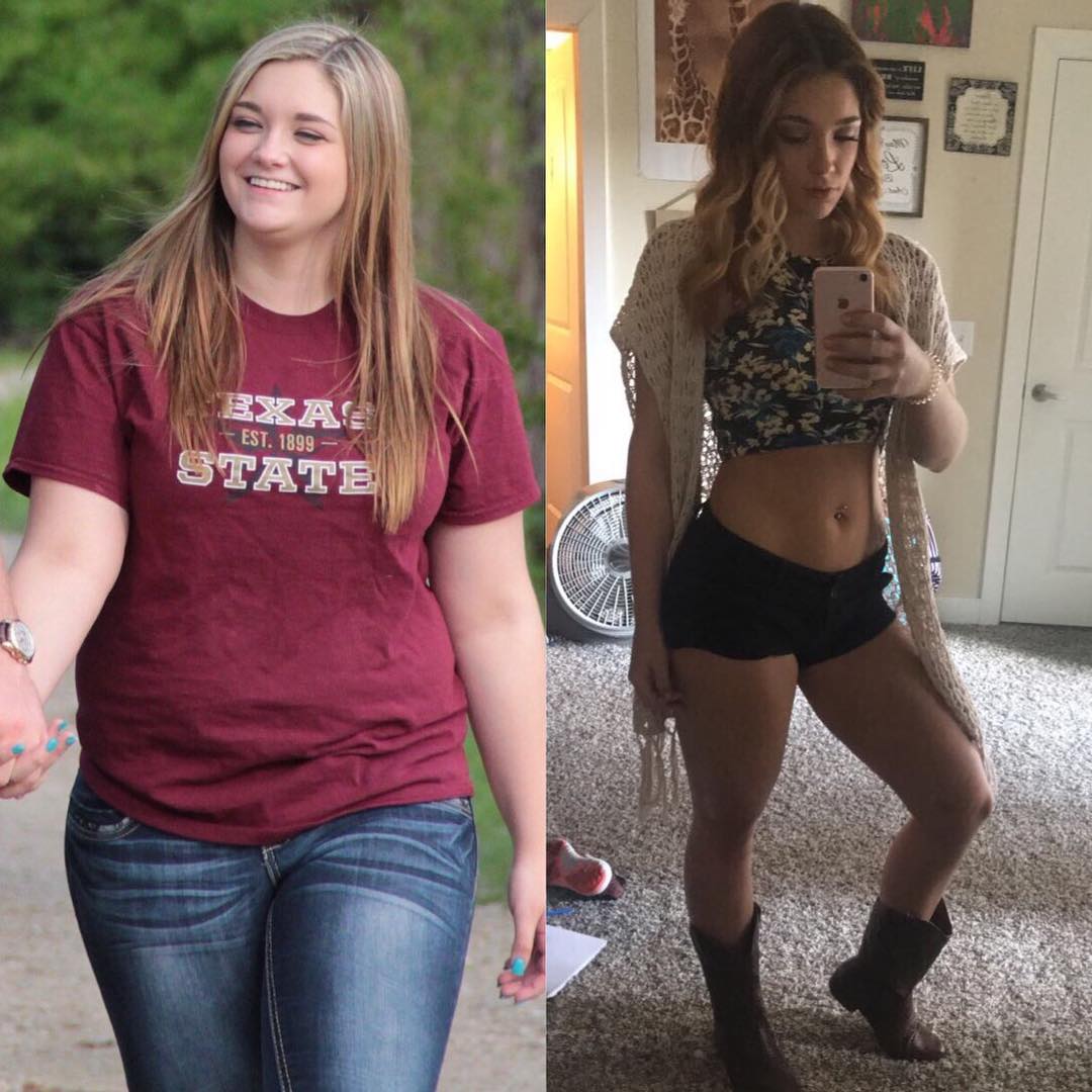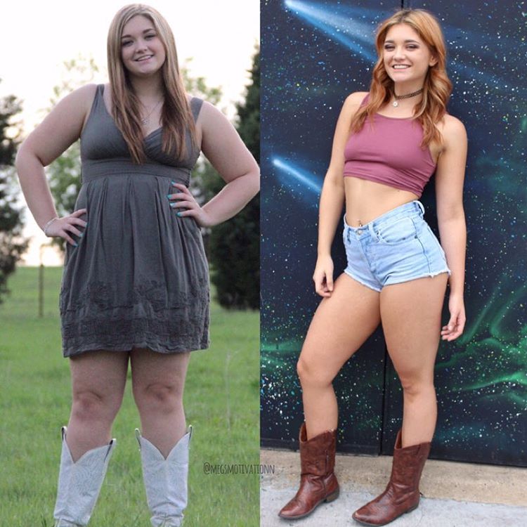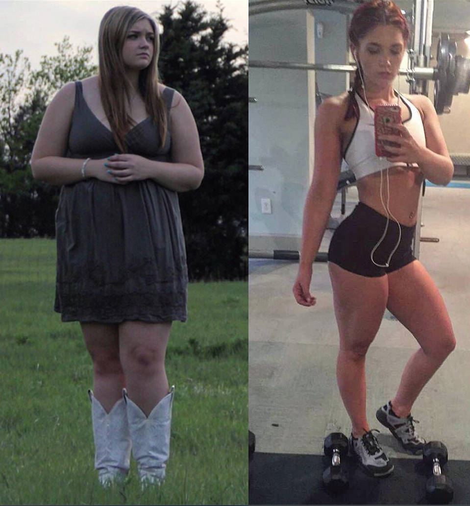 The girl on the left looks in the mirror and cries. The girl on the left wouldn’t wear shorts her whole life because when she did people would stare and talk. She hated shopping because the fitting rooms light shows you every flaw and piece of cellulite. She didn’t like photos unless they were angled from above. She even deleted all her prom photos while crying, because of how she felt about herself.. And to cope with things, she would go get a large sweet tea and fries and eat her problems away.. I could not live like that anymore.