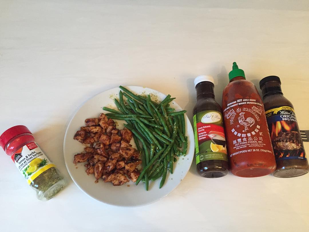 “Tell me this doesn’t look amazing 😏 full plate of food for only 220 calories!!!!! Chicken sauces are a squirt of each on the right ( ideal protein 10 cal/ two tbsp balsamic, Siracha and walden farms zero cal BBQ sauce. Lemon seasoning for the green beans. 40g protein 7g carbs 1 gram fat”