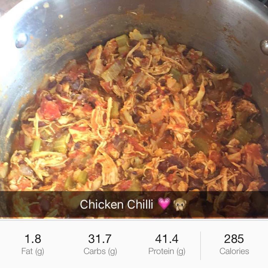 Sauté onions and garlic with spices and a bit of coconut milk (* coconut or olive oil if you chose to add it) then add all other ingredients and bring to a boil. Reduce to low and simmer for 45-75 mins until celery is at desired tenderness. In another pot boil chicken breasts in either water or broth and then take out and shred. Either add into Chilli halfway through or at the end.