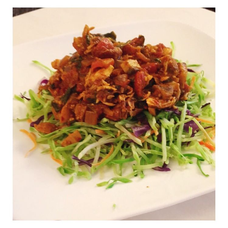 “Dinner was Homemade chicken curry over broccoli slaw”