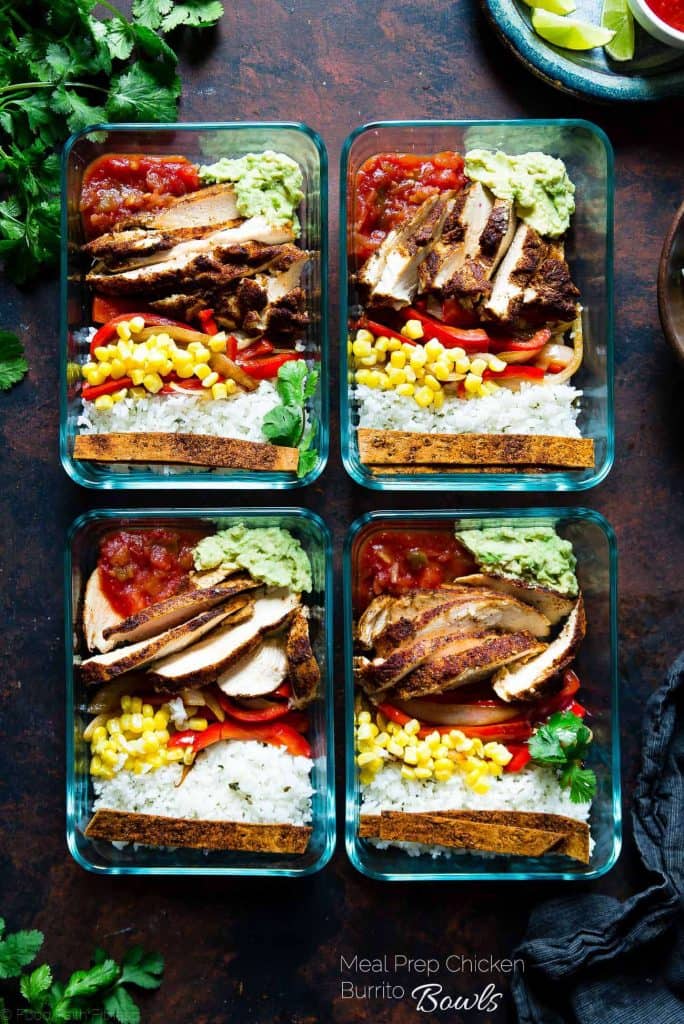 “This healthy, gluten free chicken burrito bowl recipe can be made ahead of time, so it’s ready to go for busy days. It’s a dairy-free delicious desk lunch option!”. Recipe: FoodFaithFitness.