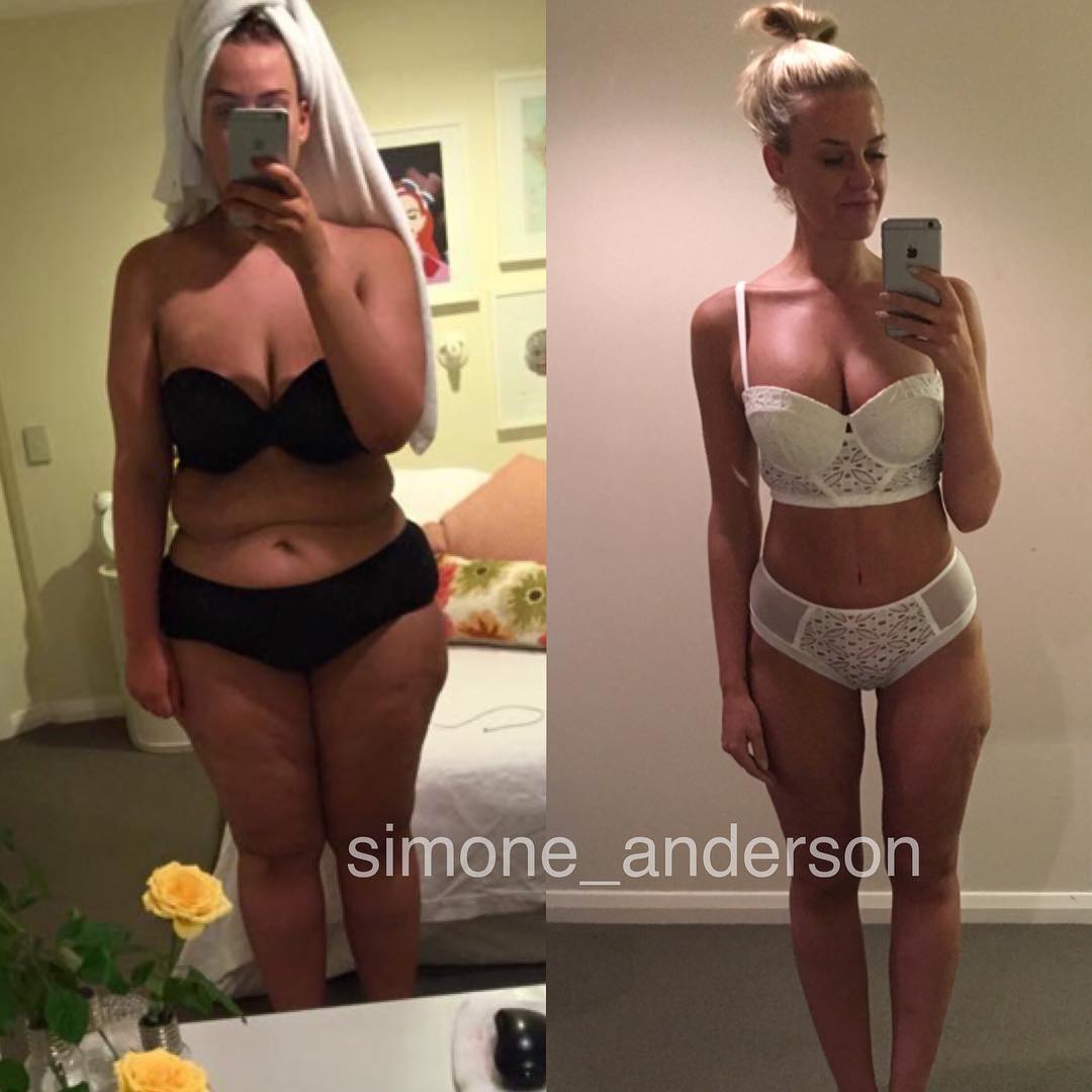 Simone Anderson Pretscherer started her weight loss journey at 169kg or 372 pounds, going frrom a size 28/30 to a size 12 in a little under two years. Simone has over 235,000 followers on her Instagram page (be sure to follow her below) who she inspires with daily photos and updates.
