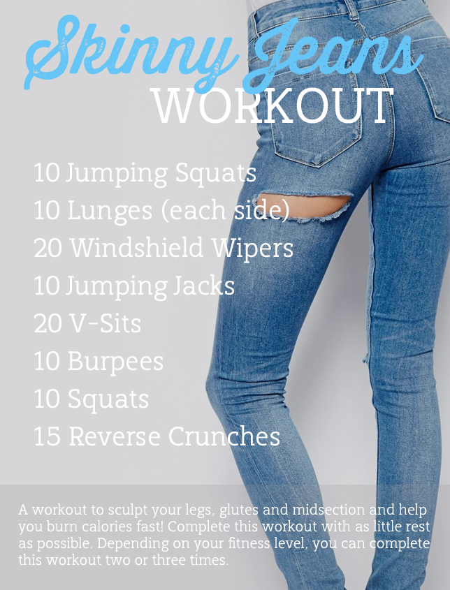 This “Skinny Jeans” workout is designed to help you burn calories fast and help you lose fat and tone up in all the right places!