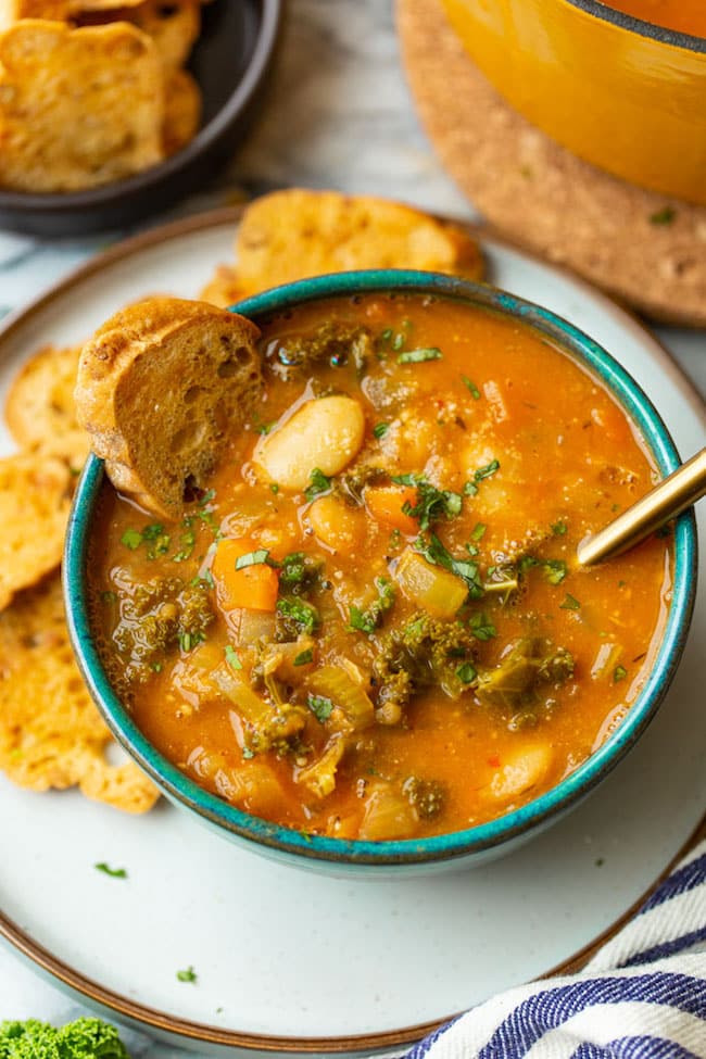 “Creamy Vegetable Soup (without cream) is a vegan and gluten-free favorite that comes together in one pot. Filled with fiber and plant protein, this hearty and healthy soup is pure comfort.”. Recipe: DishingOutHealth.