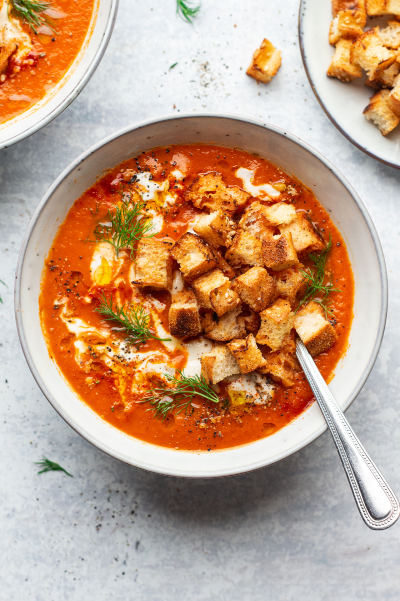 “The original recipe was a touch more involved as I sauteed onion and garlic in olive oil separately, but for the sake of simplicity and to keep this soup as hands off as possible, I simplified the process by roasting the onions and garlic in the oven, alongside fennel and cherry toms. If you are after something more filling, add some homemade croutons, spiced chickpeas or seeds as a topping or serve with a hefty slice of grilled bread. Delicious, filling and healthy.”. Recipe: LazyCatKitchen.