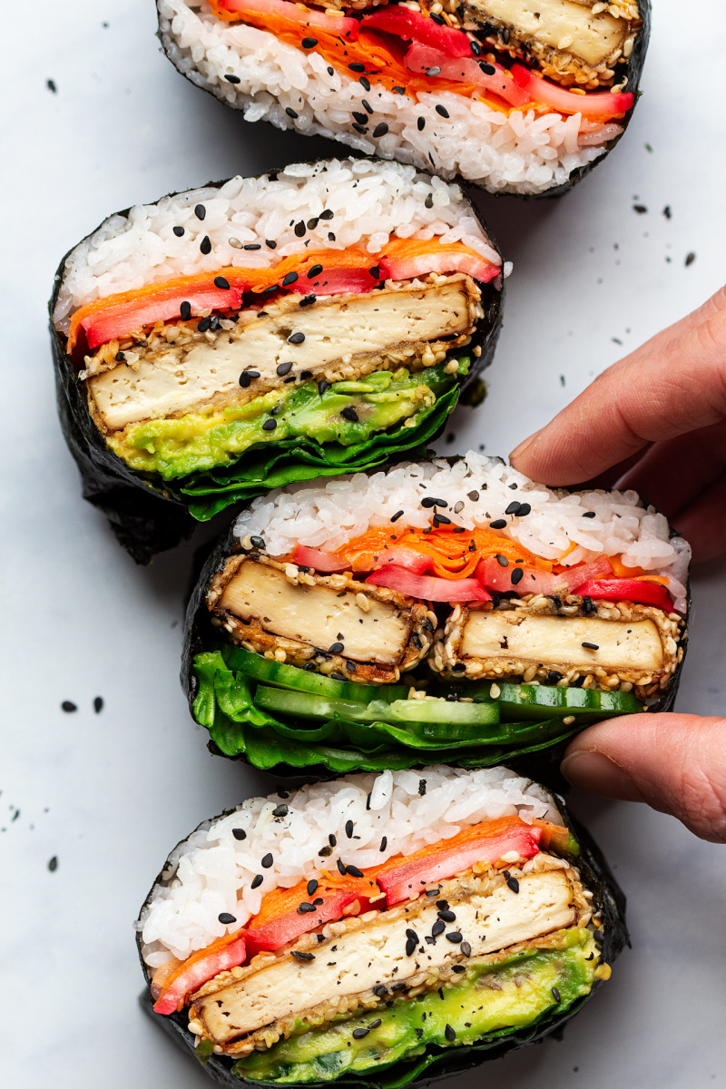 “Today’s dish is a rehash of two of my old recipes based on things I already had in my cupboards and fridge: sushi rice, nori sheets, soy sauce and plain tofu. If you are missing some of these, get creative – use whatever else you have on hand.”. Recipe: LazyCatKitchen.