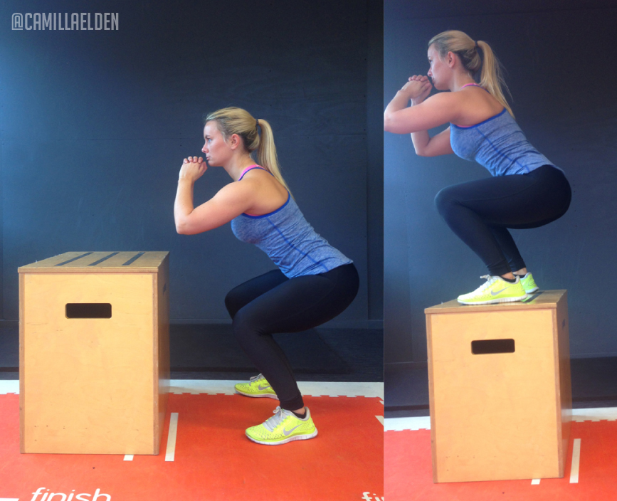 1. Stand in an athletic position, with your feet shoulder width or slightly wider than shoulder width apart, at a comfortable distance from the box, make sure the box is at an appropriate height, work your way up from a lower height if your are just starting.