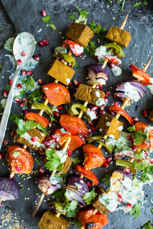 Friday – Spiced Tofu Kebabs with Vegan Green Yoghurt Sauce
